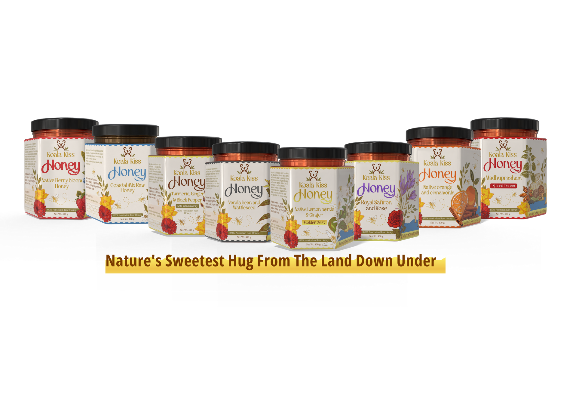 Experience the natural sweetness and wellness benefits of our exclusive Pack of 8 Premium Jars of raw infused honey. Each jar is handcrafted with care, blending pure Australian honey with unique, premium botanicals and spices to create a delightful range of flavors that nourish both body and soul.